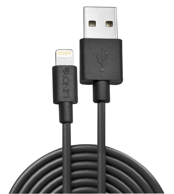 Lindy 31322 USB to Apple iPhone Lightning Cable, Black