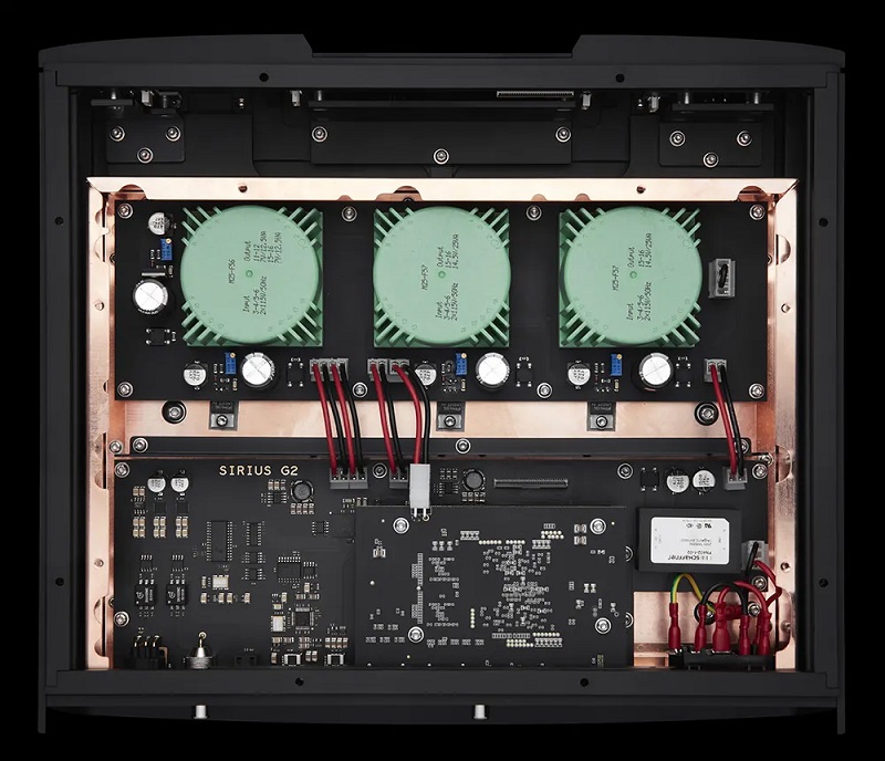 The Sirius G2.1 housing is designed as a double structure, in which the outer part is made of high-quality aluminum and supplemented with an inner layer of copper. The base is heavy and has an improved four-foot multi-spring suspension system that ensures the quiet, noise-dampening operation of the Unity Chassis II. The internal circuits of the machine are physically positioned in such a way that overall balance is maintained. Thanks to specially designed stands that damp and absorb vibrations, the Sirius G2.1 is stable and ensures smooth signal transmission. What's more, along with the Unity Chassis II technology, the device introduces sophisticated galvanic isolation that drastically reduces the potential of electromagnetic interference, ensuring extremely clear, clear sound. Precise re-clocking reduces jitter, and the all-new galvanic isolation provides even better protection against EMI noise. The result is as much as 80% noise reduction.