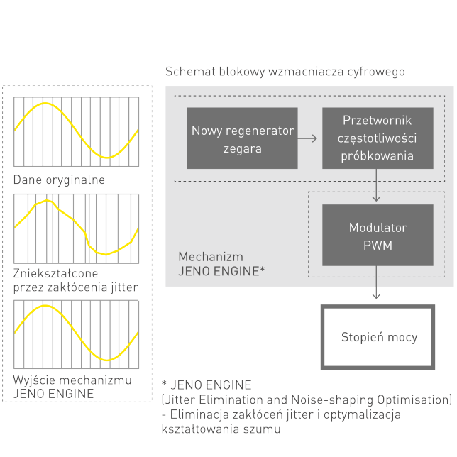 - Mechanizm JENO (eliminacja zniekształceń typu jitter i optymalizacja kształtowania hałasu)