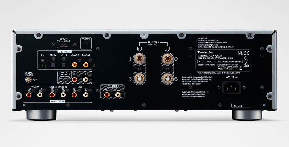 W pełni cyfrowy wzmacniacz zintegrowany stereo Technics SU-G700M2, zdolny do odtwarzania wyjątkowo czystego i dynamicznego dźwięku, odziedziczył technologie takie jak silnik JENO (eliminacja jittera i optymalizacja kształtowania szumu) w celu uzyskania najwyższej precyzji sygnału bez zakłóceń drgania i zniekształcenia oraz LAPC (kalibracja fazy adaptacyjnej obciążenia) w celu optymalnego dopasowania do każdego głośnika.